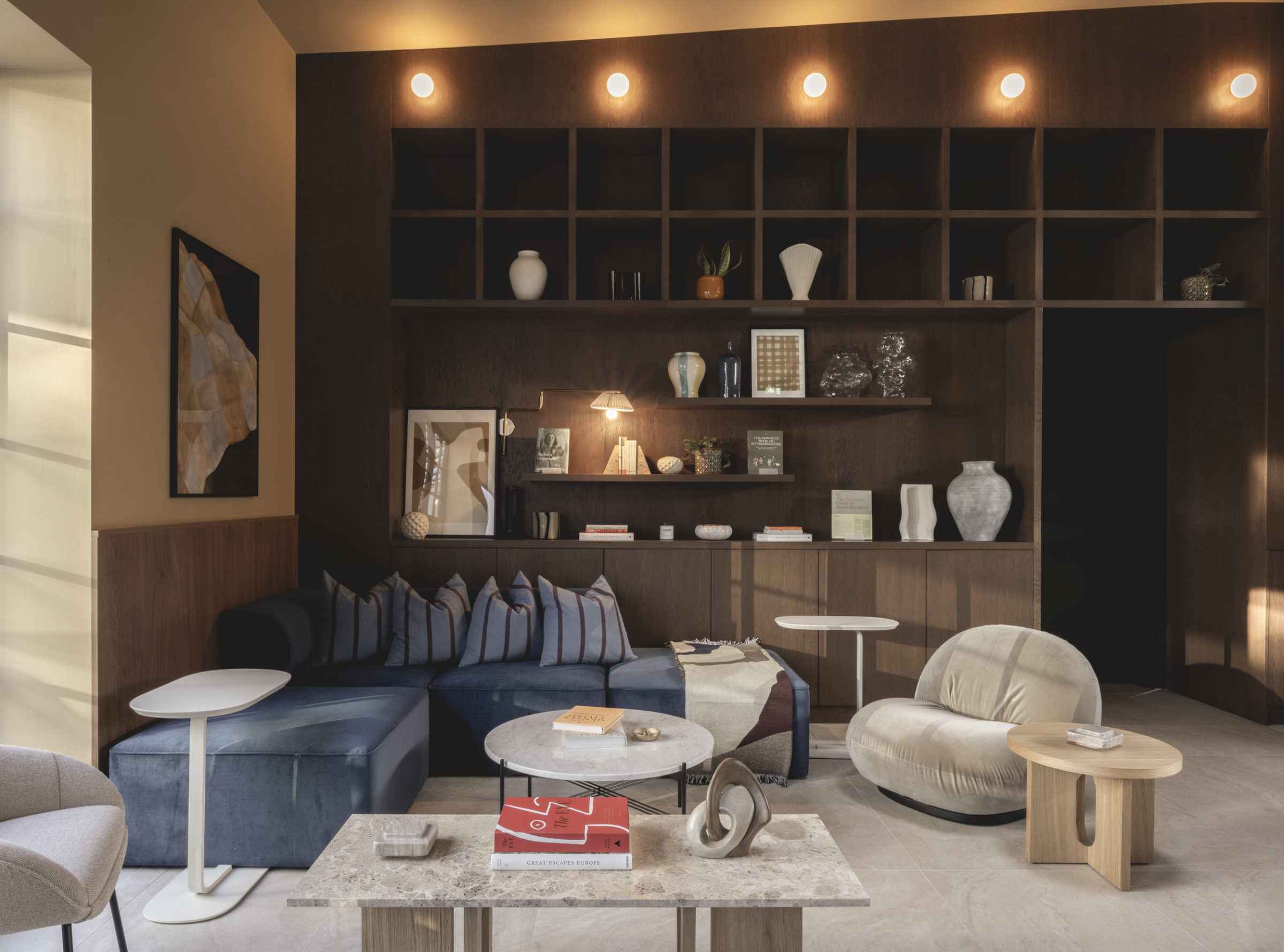 The Furniture Practice was appointed to specify furniture that aligns with this holistic, tenant-centred vision of modern work, prioritising both comfort and quality. To enhance this shift, the project features a palette of soft yellows, gentle blues, and rich browns, complemented by natural materials like limestone and warm timber.