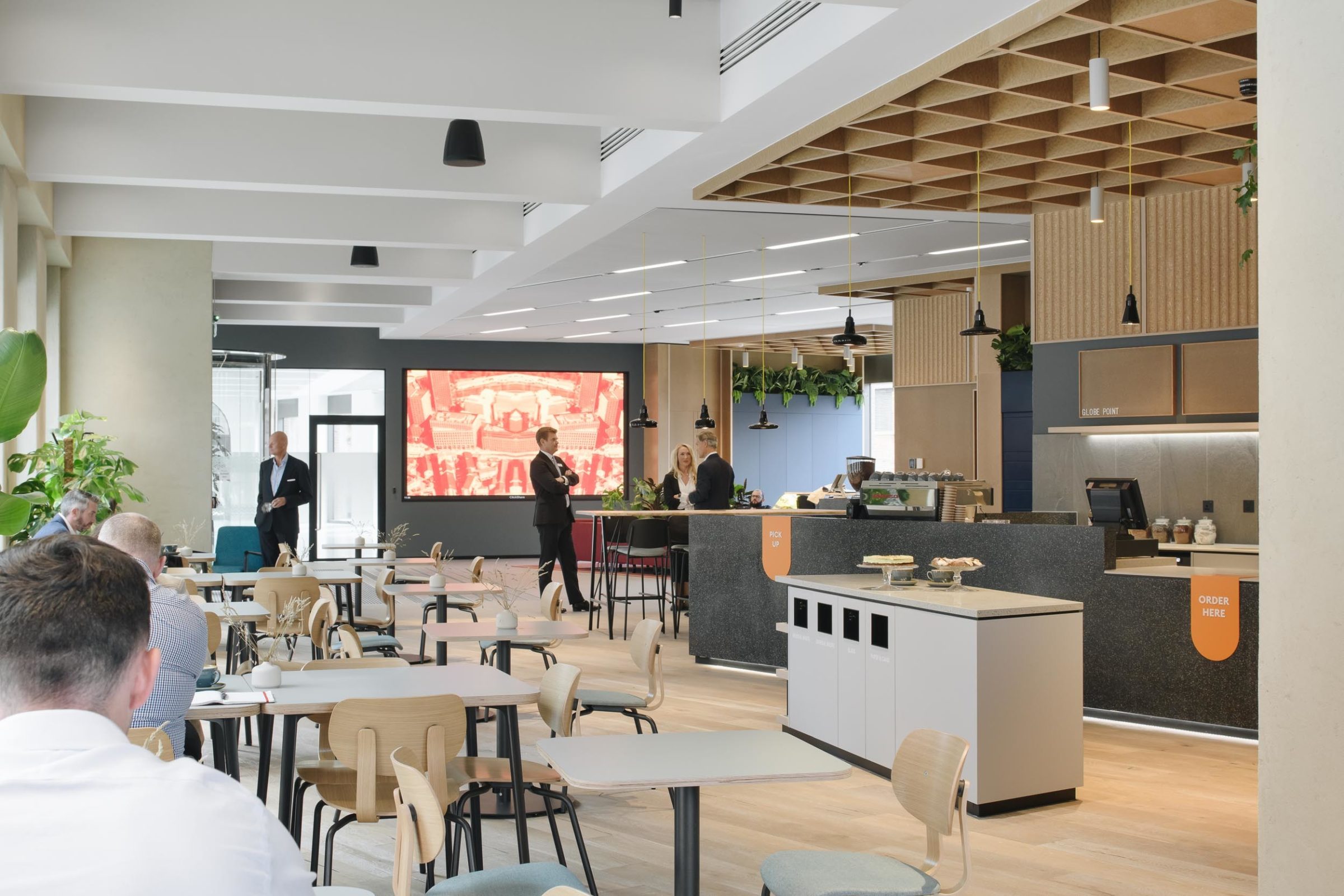The flexible ground floor amenity areas, designed by Ekho Studio, have been conceived as a community space; the cafe space is a real focal point that brings people together and creates opportunities for events, social gatherings, collaboration and informal meetings.