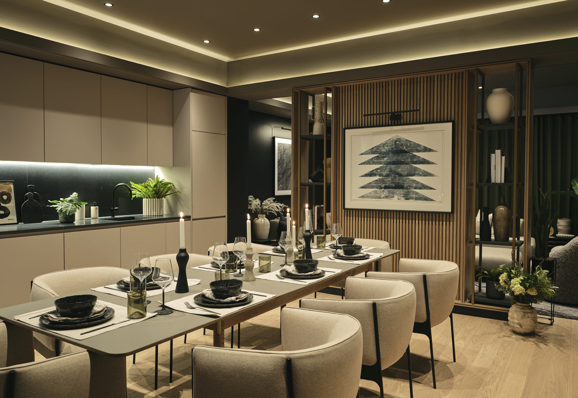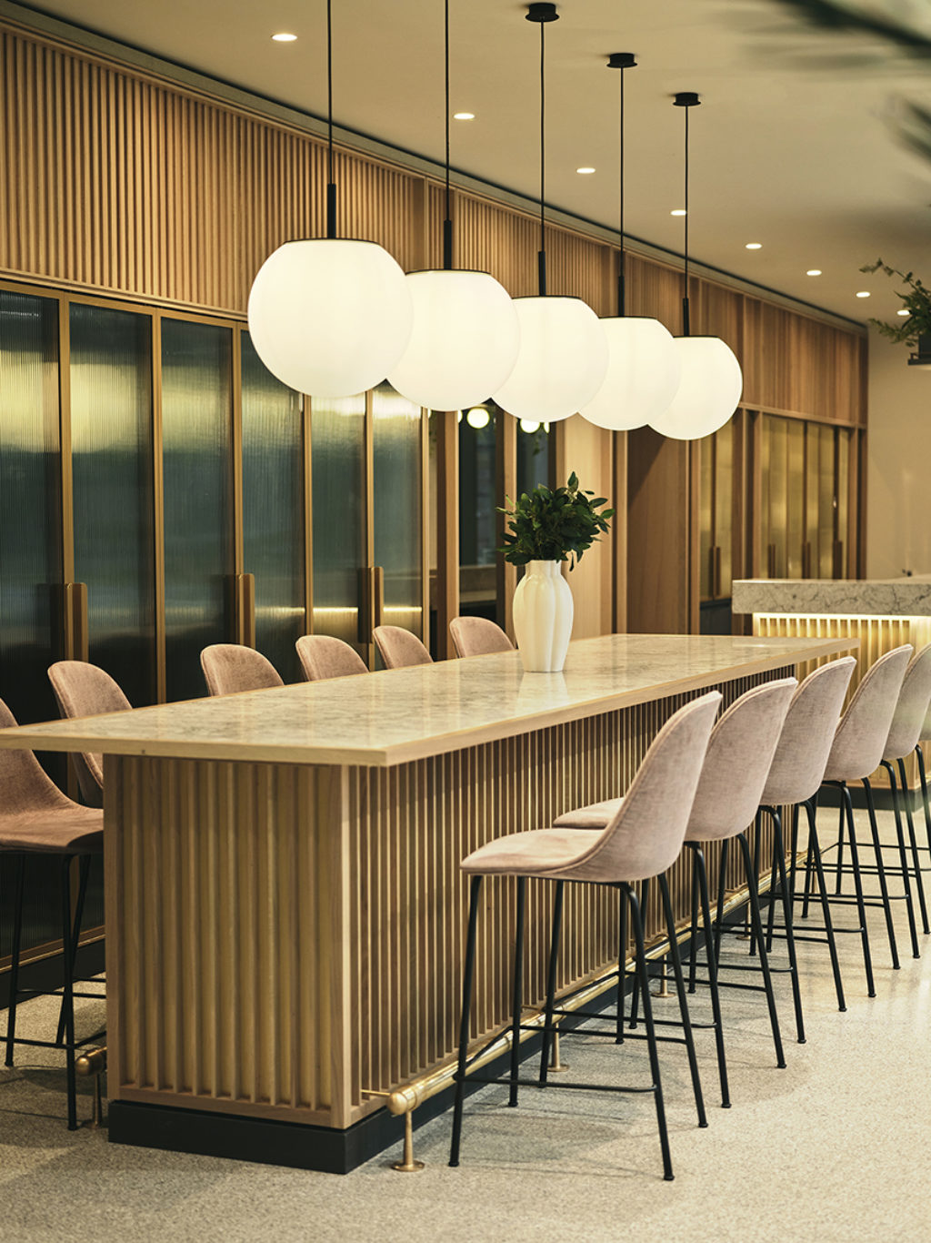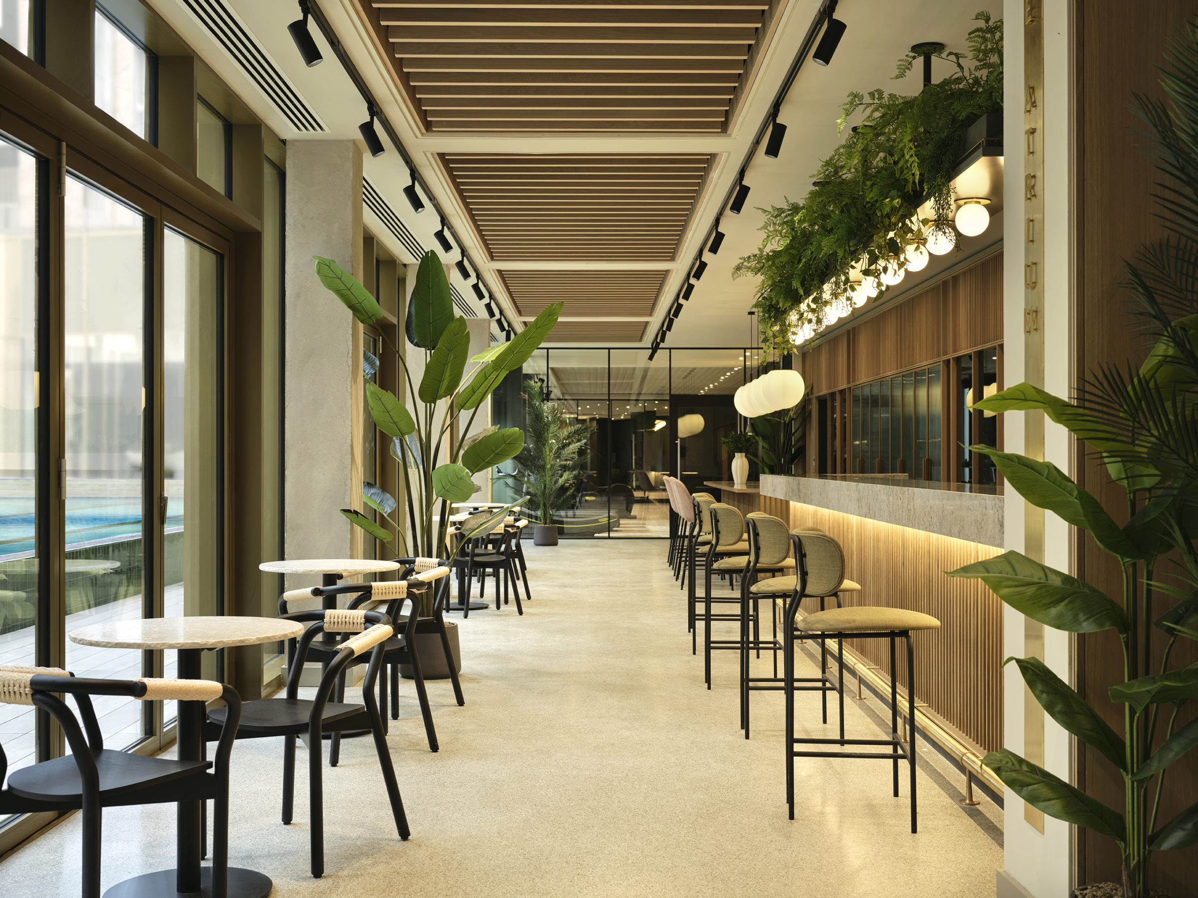 Materiality was a key consideration throughout the specification, alongside a strong emphasis on responsible sourcing. All furniture was produced within the UK and Europe, with key items, such as apartment sofas, manufactured in the UK. Recycled materials were incorporated where possible, including Rely Dining Chairs crafted from post-consumer plastic and lounge chairs upholstered in Kvadrat’s ReWool fabric.