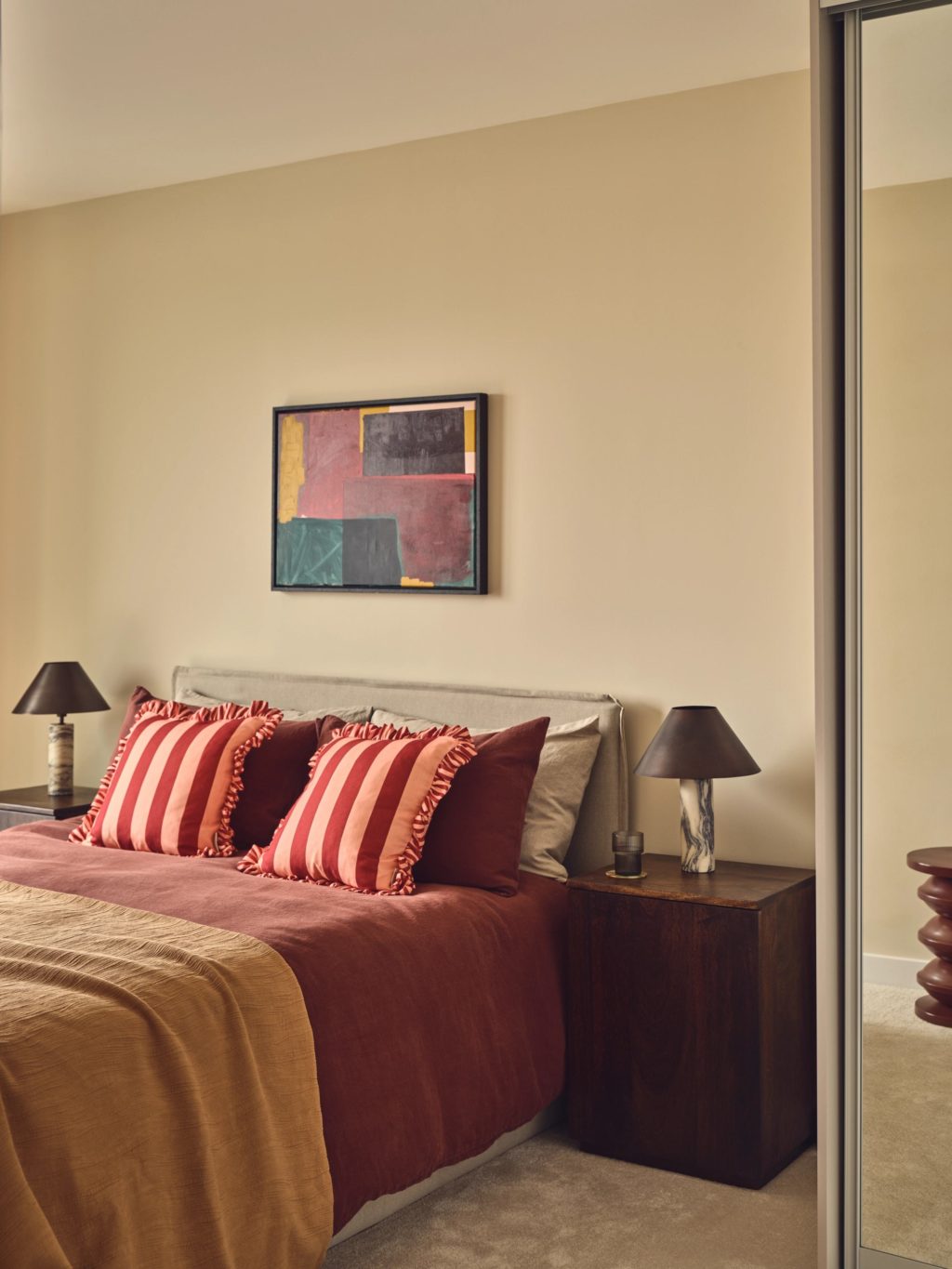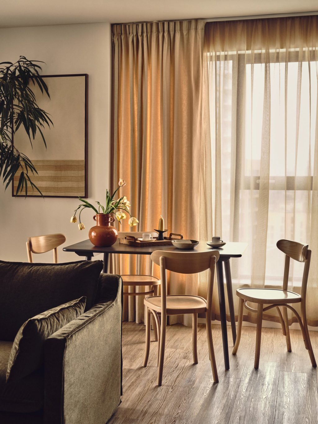 Amenity areas, including co-working hubs, lounges and landscaped terraces, were designed to foster connection and enrich daily life. Responding to this brief, we utilised the full capabilities of our Living team, including in-house product and creative design, to create bespoke pieces that expressed the operator’s vision. Standout elements include custom-designed timber touchpoint tables for the co-working hub, decorative lighting and upholstery crafted to exacting standards. These bespoke interventions were complemented by high-profile designs from Gubi and &Tradition, adding depth and distinction to the interiors.