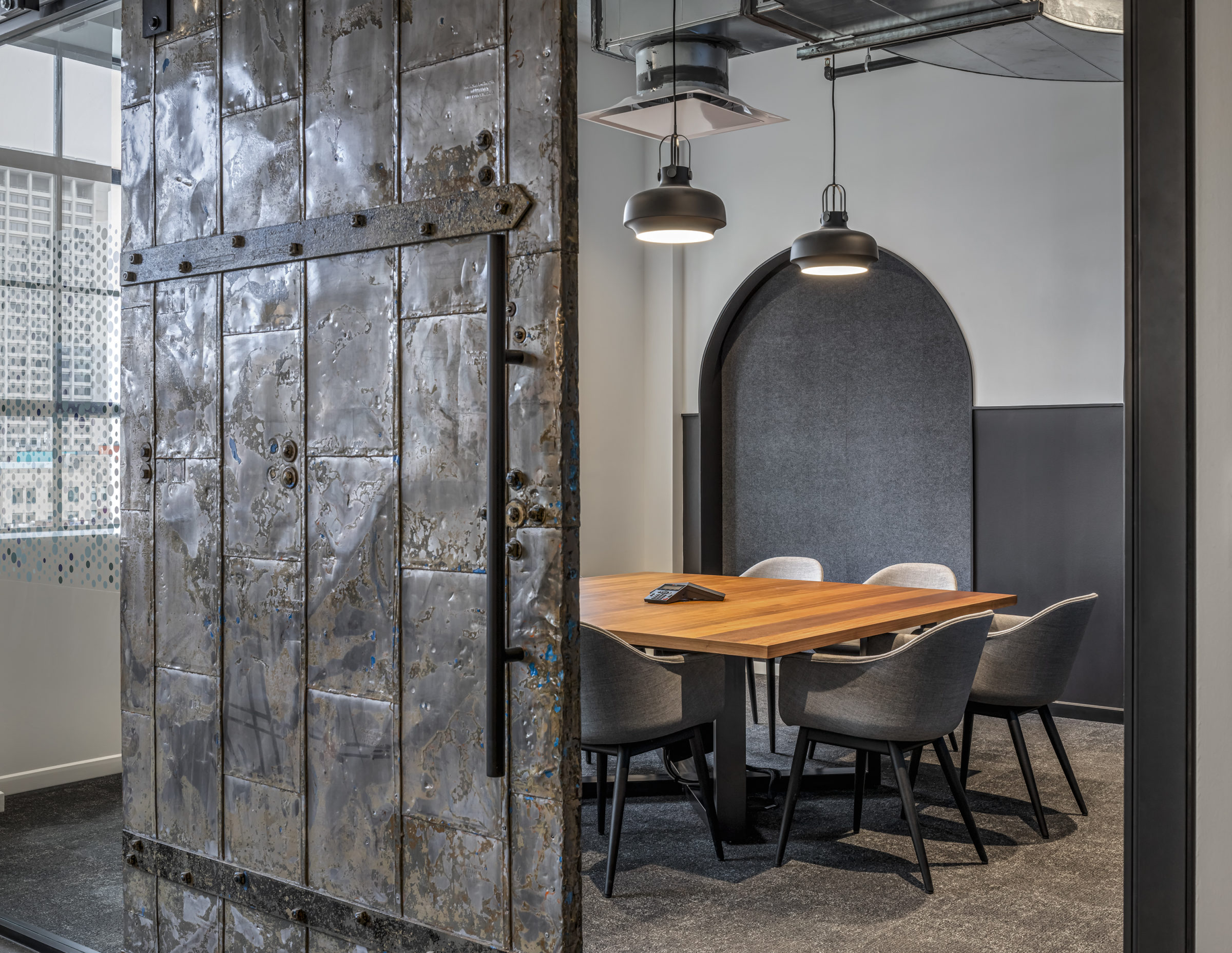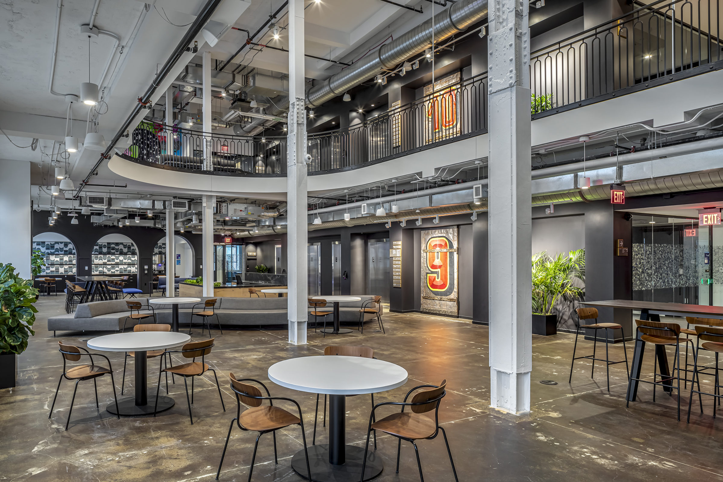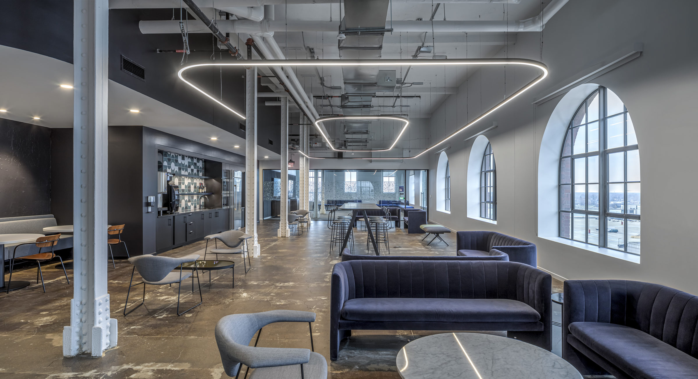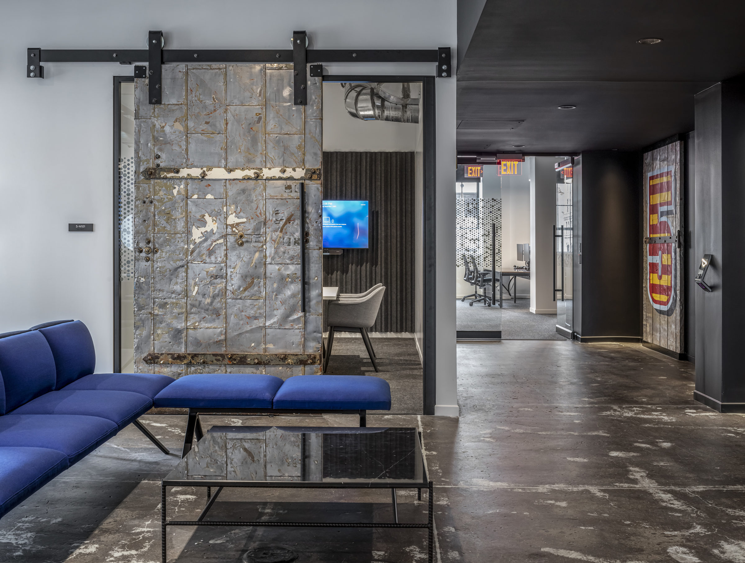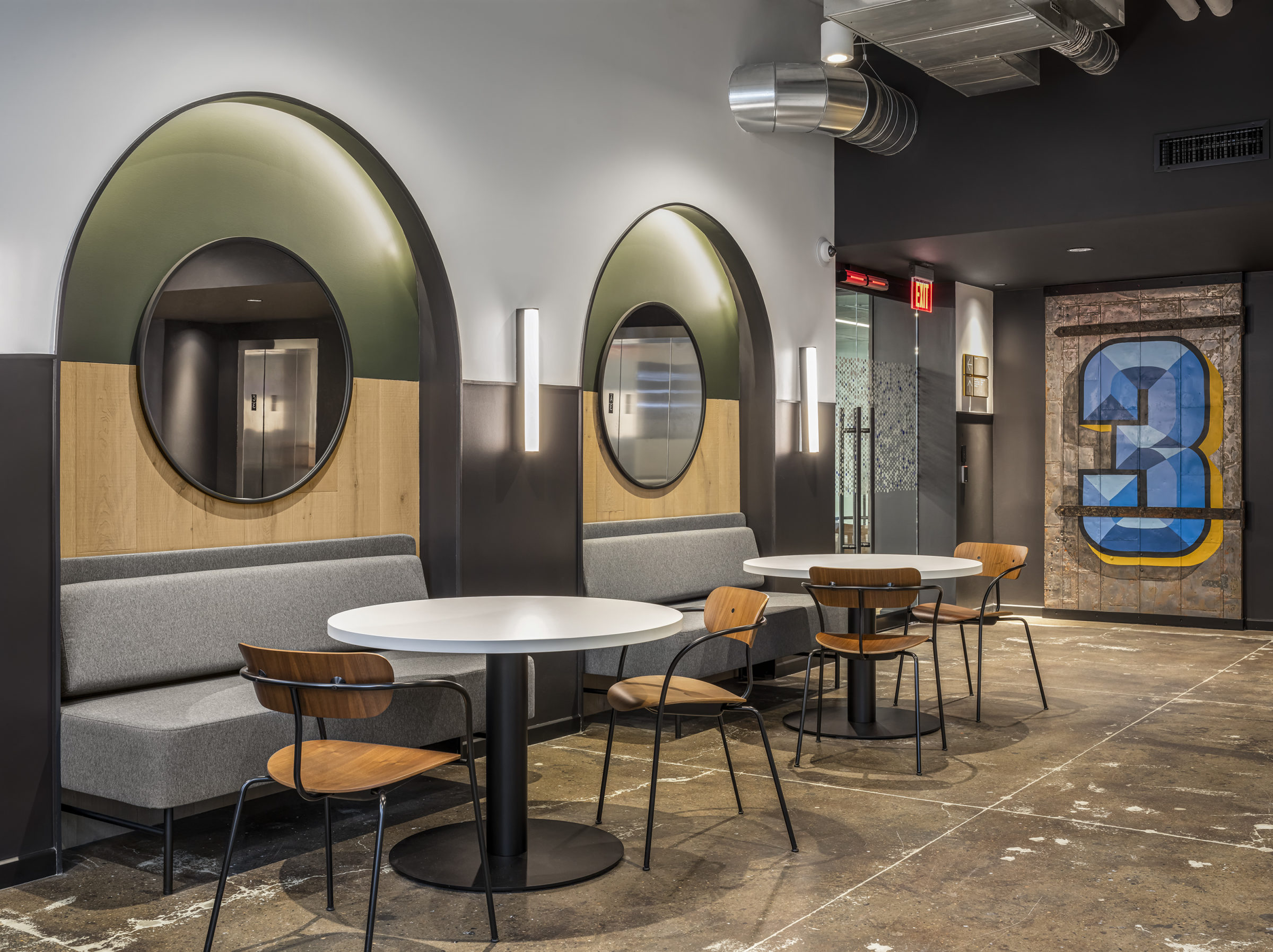 The heritage of Detroit, as well as of the Marquette building itself, largely influenced BDG’s concept for the interior. During the renovation, the building was re-envisioned and much of the construction’s original steel piers, brick columns, windows, mosaic and concrete floors were left in place, as well as the building’s original sliding barn doors.
