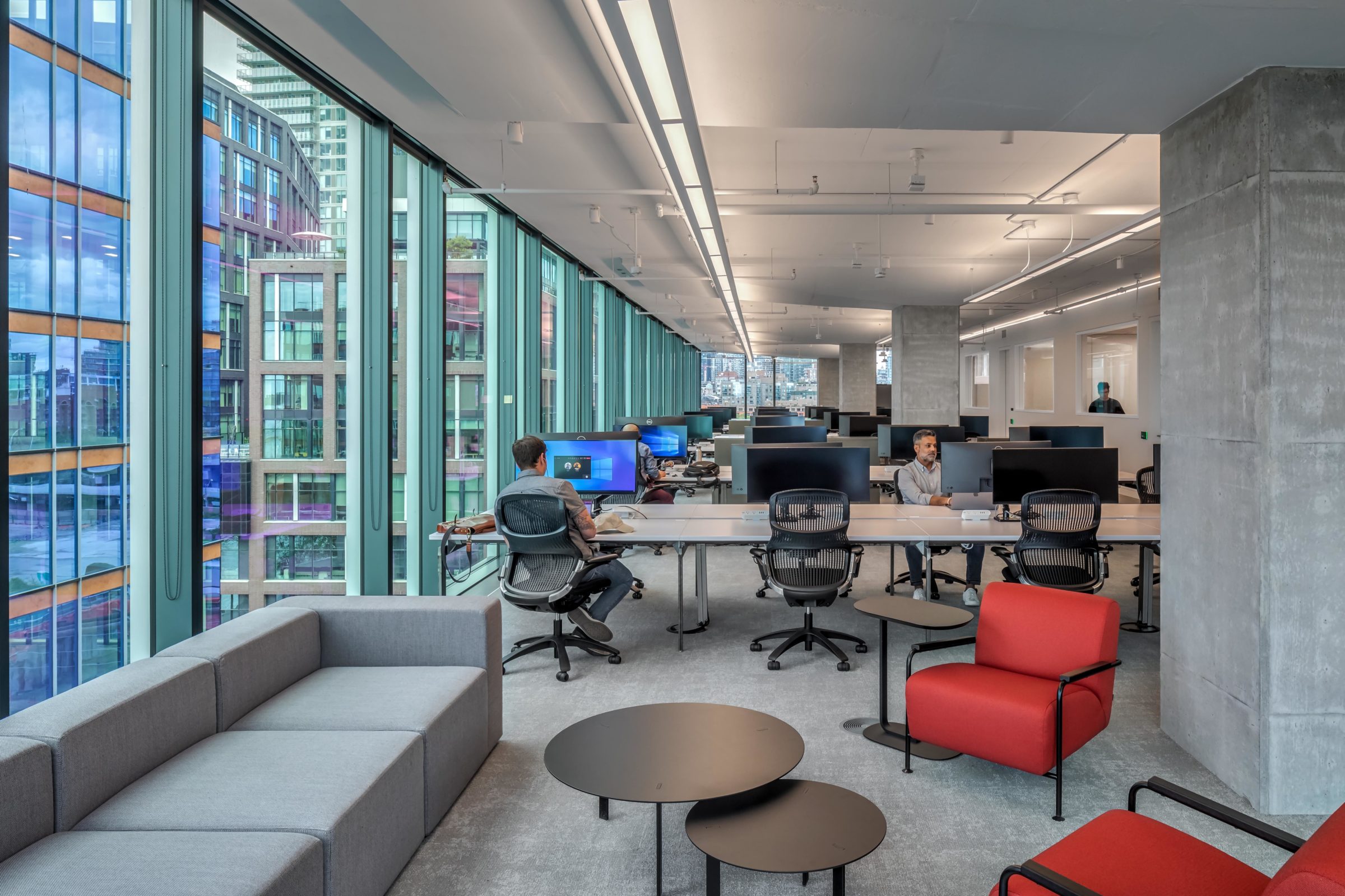 Sustainability was an important requirement for the project, which is why TFP, alongside BDG, opted to repurpose 400 furniture pieces during the specification process, helping reduce the project’s overall carbon footprint. The selected pieces, sourced from 10 different pre-existing WPP locations in Toronto, can be seen in the main work floors, breakout areas, meeting rooms, café and arrival areas.