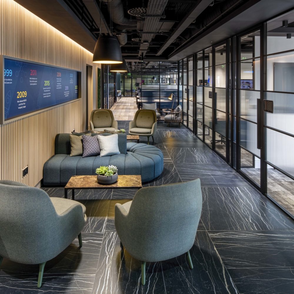 Cyber security and tech insurance specialists CFC set out to test out a new kind of workspace for their team in creating their Innovation Hub. TFP was brought on to work alongside designer Cardo, helping to develop visuals, layout and specification for a collaborative and seamless office space.