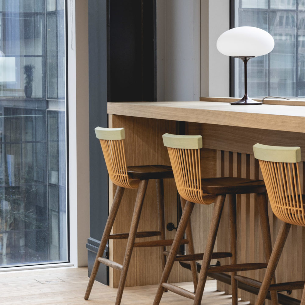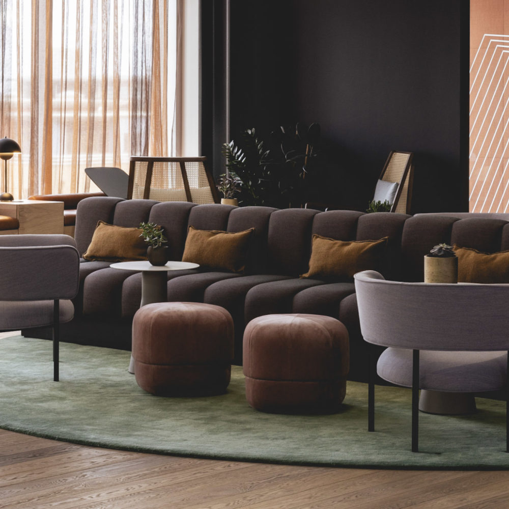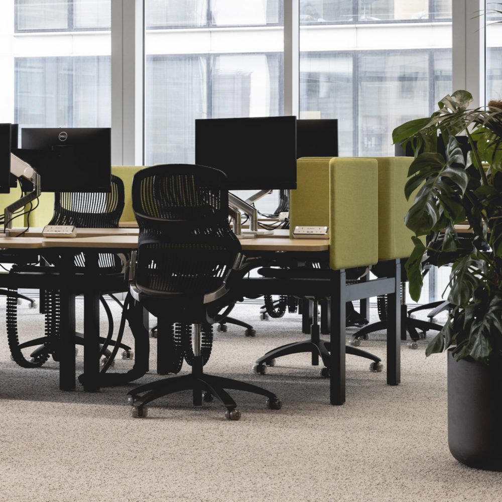 Prioritising sustainability was a core element of the project, which targets the BREEAM Outstanding and WELL Platinum ratings. In keeping with this goal, all products sourced for the fit-out were low VOC and from responsibly managed sources, while we also collected, cleaned and re-conditioned as many of Cognizant’s existing task chairs and desks as possible. We repurposed sit-stand table frames from Cognizant’s former offices and enhanced them with custom-designed wraparound screens. Overall, 40 per cent of all furniture items in the office are re-used or recycled pieces.