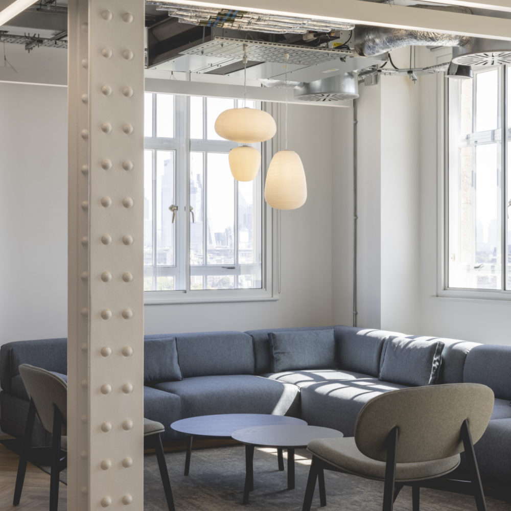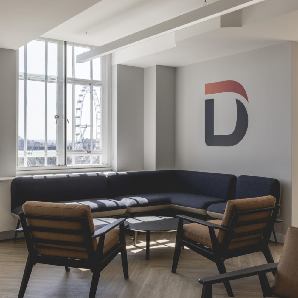 We worked closely with Darktrace and ODB Group to balance the client’s practical needs with a tailored aesthetic designed to work with the finish and feel of the building. Taking advantage of its generous windows and impressive views, the furniture specification complements the building’s open, welcoming feel: muted, neutral and grey tones create a warm but professional setting, whilst sleek boardrooms further instil confidence in visiting clients.