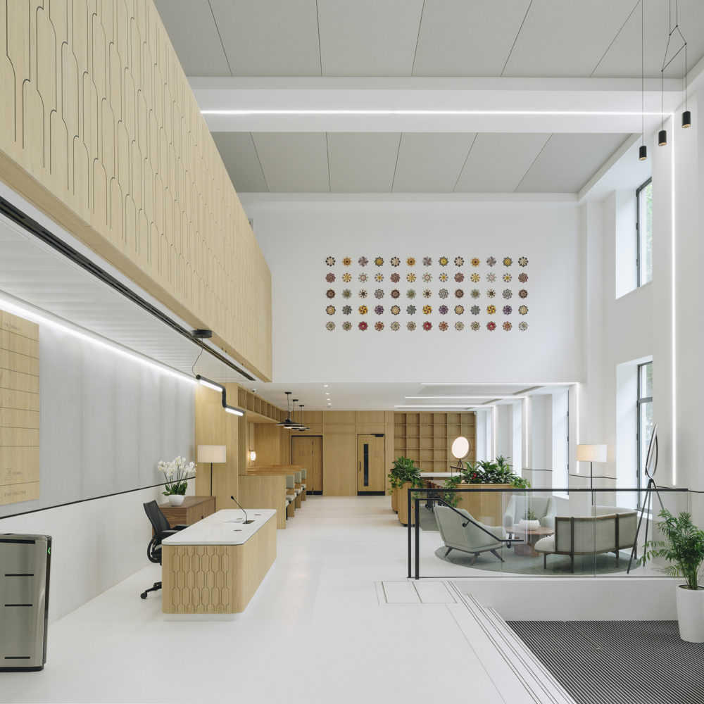 The building was imagined as a sustainability-first development, with 5plus Architects’ design for the space achieving industry-leading certifications such as BREEAM Excellent, WiredScore Platinum, and Well Building Standard Gold. Central to this approach was the ambition to create a timeless space. Working alongside 5plus Architects, we provided a blend of carefully refurbished vintage furniture and timeless contemporary design, complemented by natural materials for a modern yet respectful interpretation of the historic space.