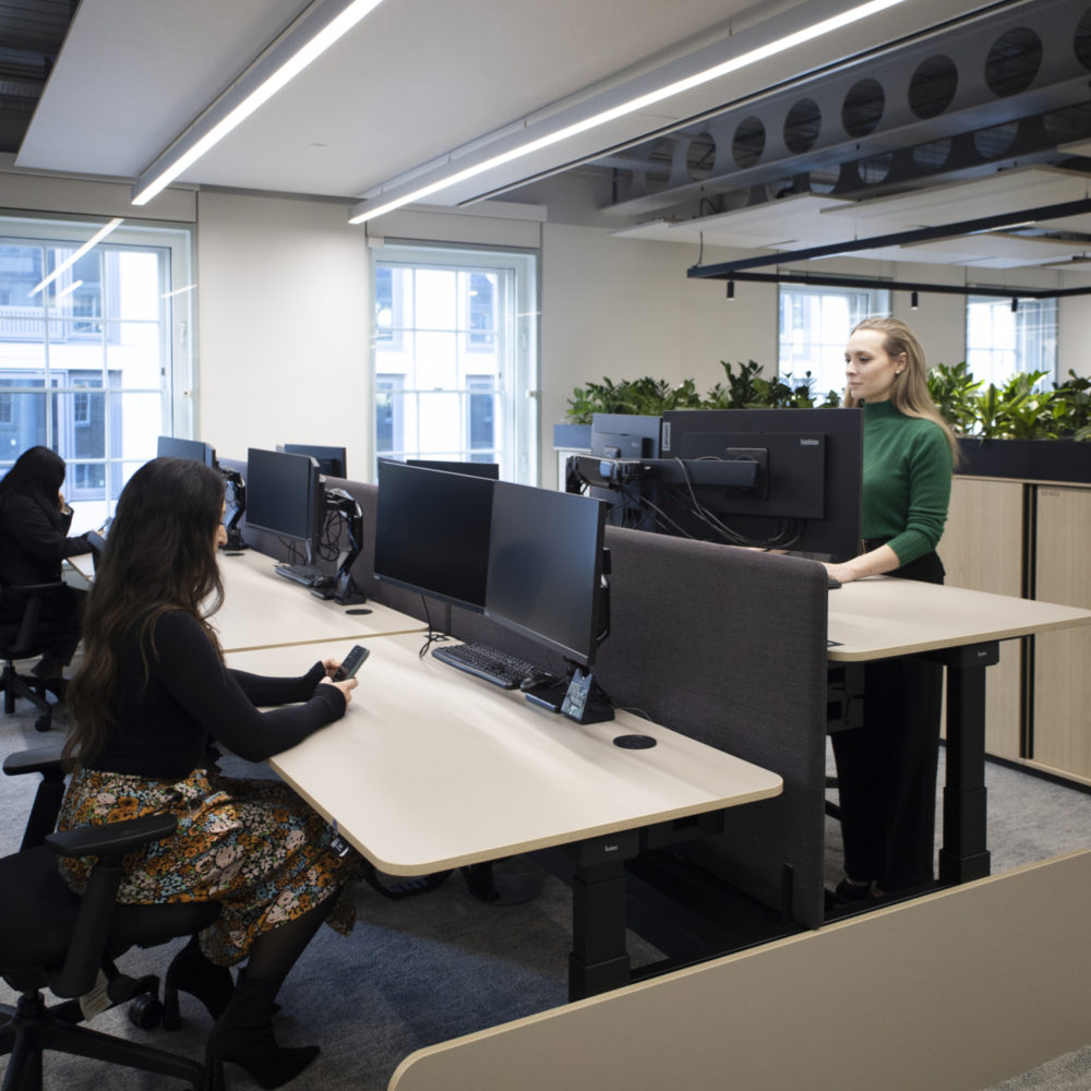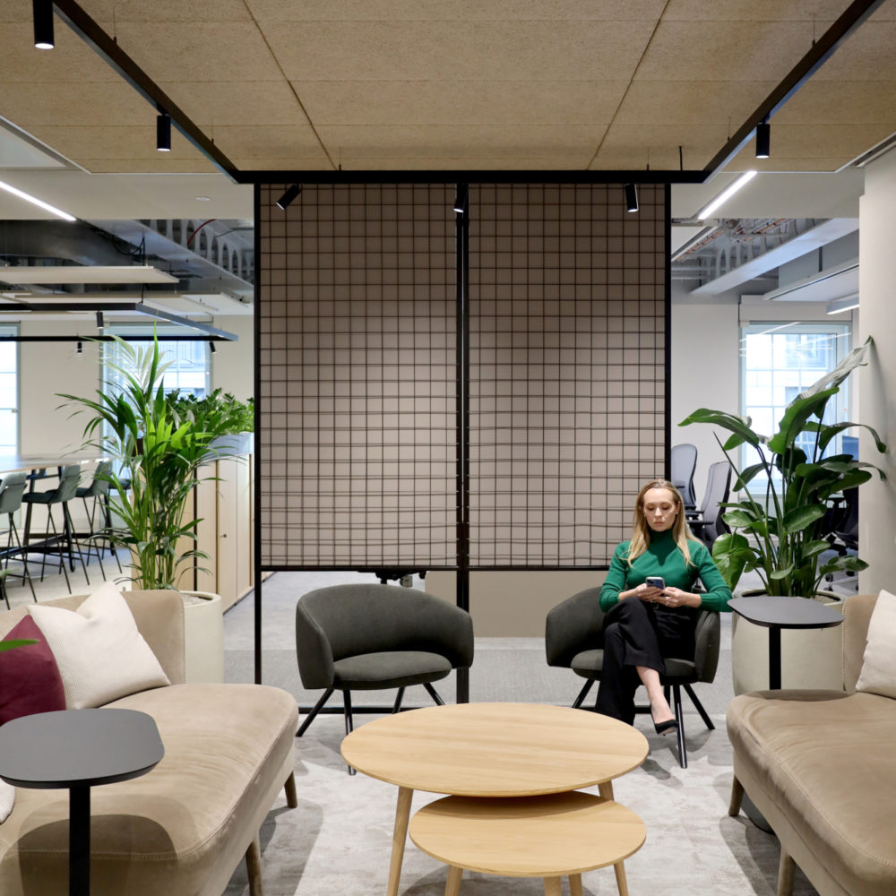 Forsters’ sustainability goals for the project guided every aspect of the furniture selection process. Working with the project’s sustainability consultant, we conducted a thorough analysis of every product to ensure compliance with rigorous BREEAM Excellent certification standards. One key decision was to reuse all task chairs from Forsters’ previous sites, thereby reducing the scheme’s environmental impact – a process which we managed from start to finish. This emphasis on reuse was complemented by carefully selecting new pieces featuring high levels of recycled and recyclable materials.