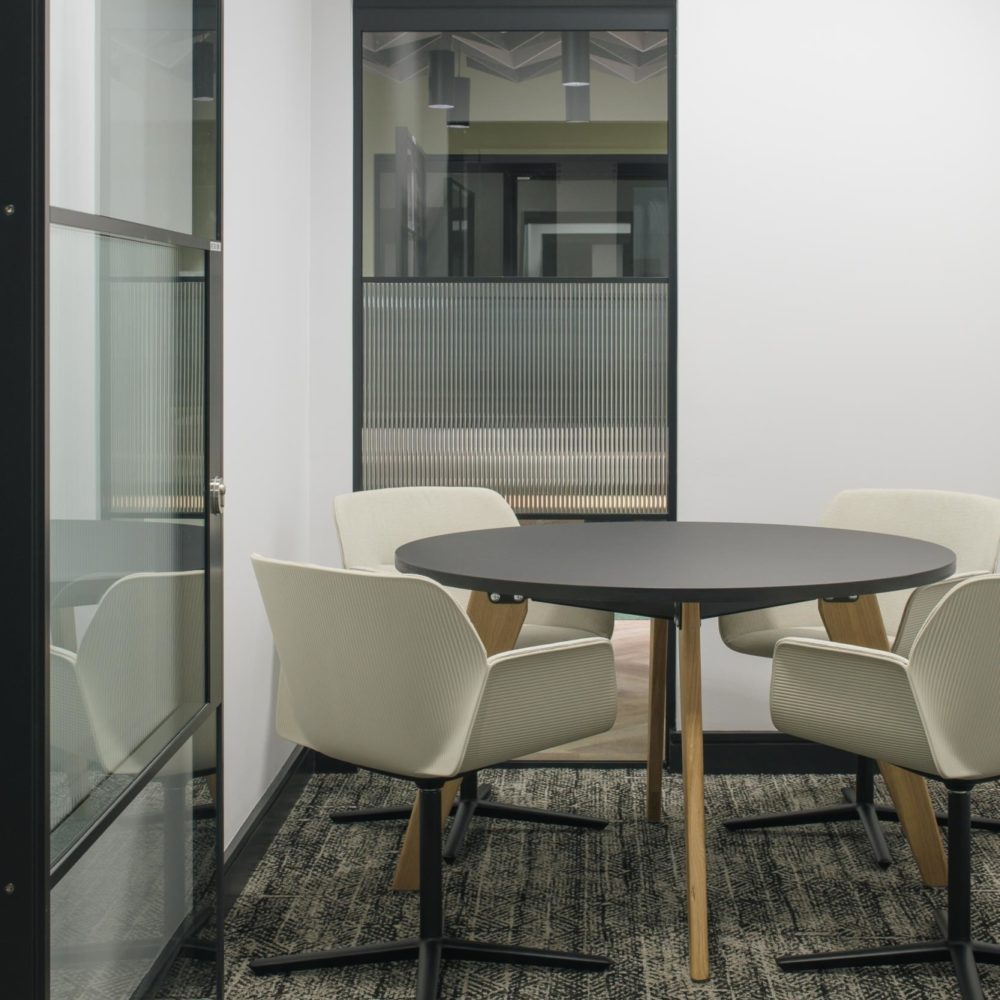 The new space represented a significant update for Fortrea. Modernised finishes - such as raw steel frames on desking were chosen, both to reflect the company’s refreshed brand, as well as to represent their clinical work. As future-facing innovators, sustainability was also a key criterion for Fortrea. We prioritised local procurement and the use of British suppliers, such as Boss Design and NaughtOne, and specified key pieces that used recycled materials, including the Humanscale Liberty Ocean Chair, Andreu World Nuez chairs and the Fredericia Pato Collection.