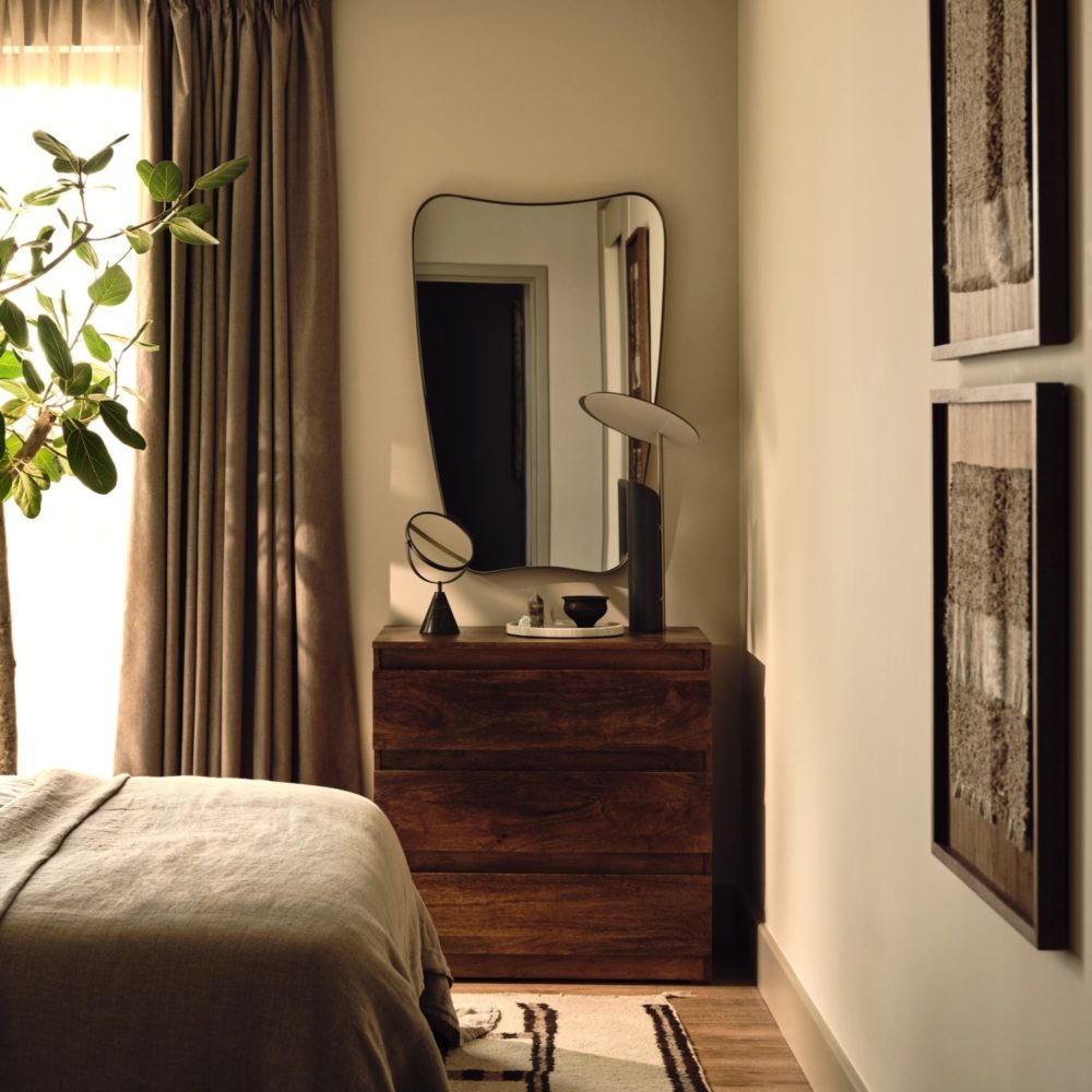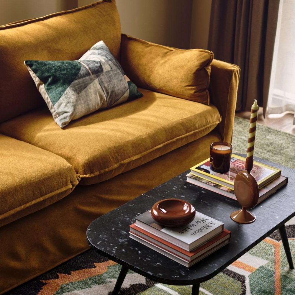The Sessile offers a dynamic take on contemporary living, with its layered interior design revealing new details on every visit. This spirit of exploration carried over to the furniture pieces specified for the development, where we prioritised responsibly sourced materials that are themselves rich in narrative and details. In the amenity spaces we worked with Fallen & Felled, a sustainable hardwood timber supplier, to create chestnut tables made from trees felled in London, while the flats feature coffee tables made using Smile Plastics’ high-quality, recycled plastics, as well as sofas produced locally in the UK. We also featured an assortment of products made in India using responsibly harvested mango wood – a material that is a natural byproduct of the fruit industry.
