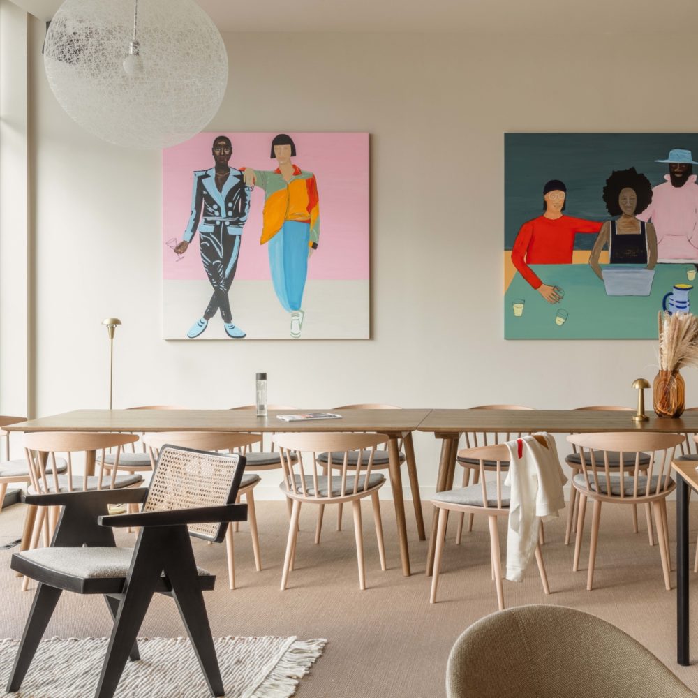 TFP's in-house Product Designer collaborated with the design team to create bespoke pieces tailored to Wembley ARK's specific requirements, including an oak meeting table with integrated power on the ground floor, which serves as a primary workspace for residents.